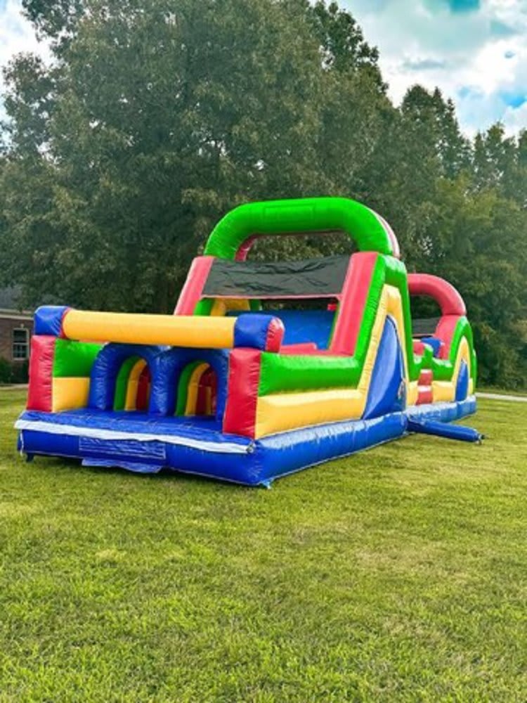 Easy to set up and take down, our 40-foot Obstacle Course is available for rent and comes with all necessary equipment and instructions. Whether you're hosting a small gathering or a large event, this inflatable course will bring energy and excitement to your occasion.